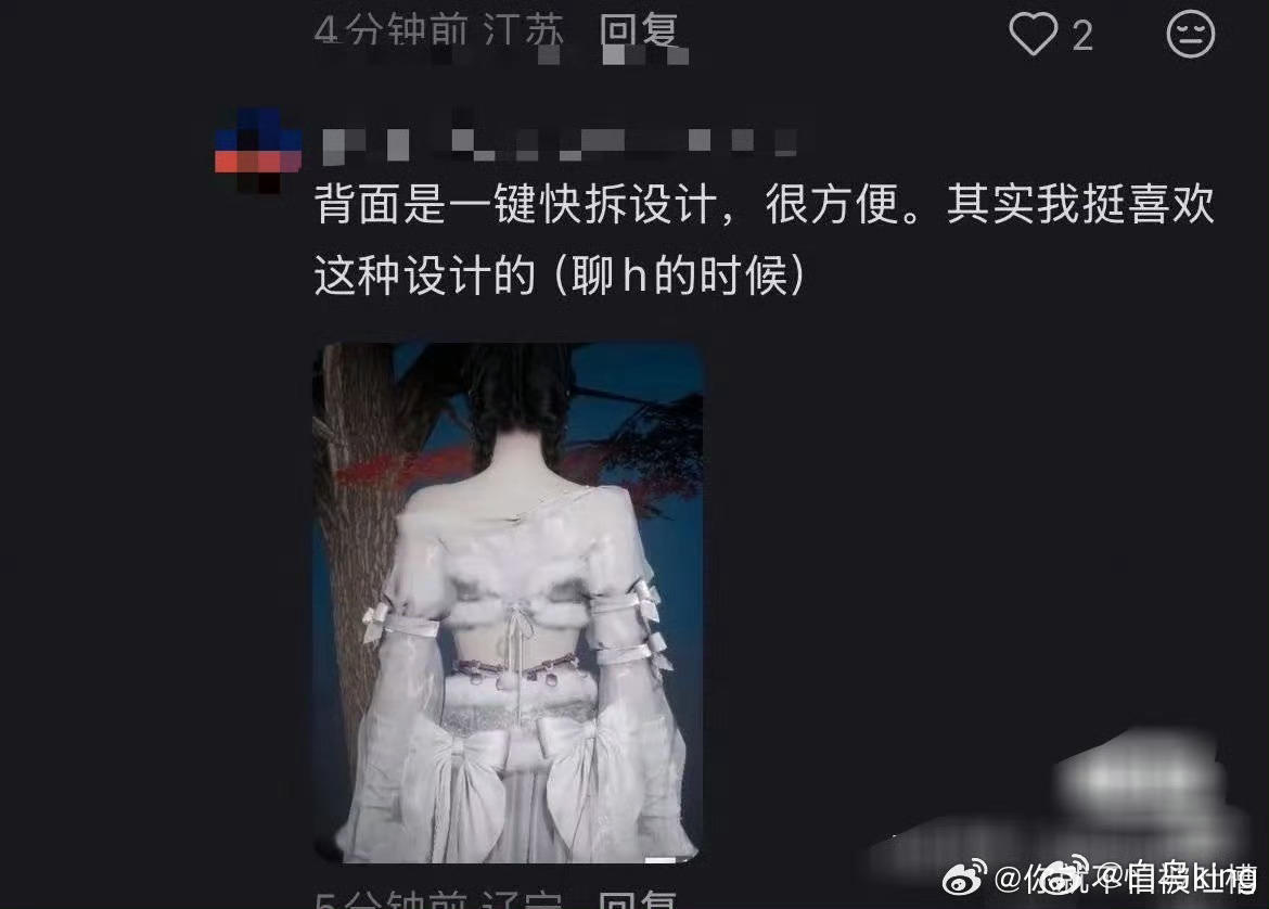 不排除这个衣服有萌的正常加裤子的穿搭,但是这个渔网,这个漏底裤,纱可以染成透明,这个蝴蝶结,毛边家露腰露腿,已经有人通过这个服装开始涩情化女号了,正常搭配玩家没理由发挥搭配之力为这件衣服缺少的布料多花心思,多花钱后面那几张图我晃一眼我以为是那个黄色网站的3d区人物跑出来了,早说我下的是情趣游戏啊。当然可以不用染成那样,但是不染成那样不代表这种染色不存在,也改变不了后面就是一根绑带的设计以及超短裤