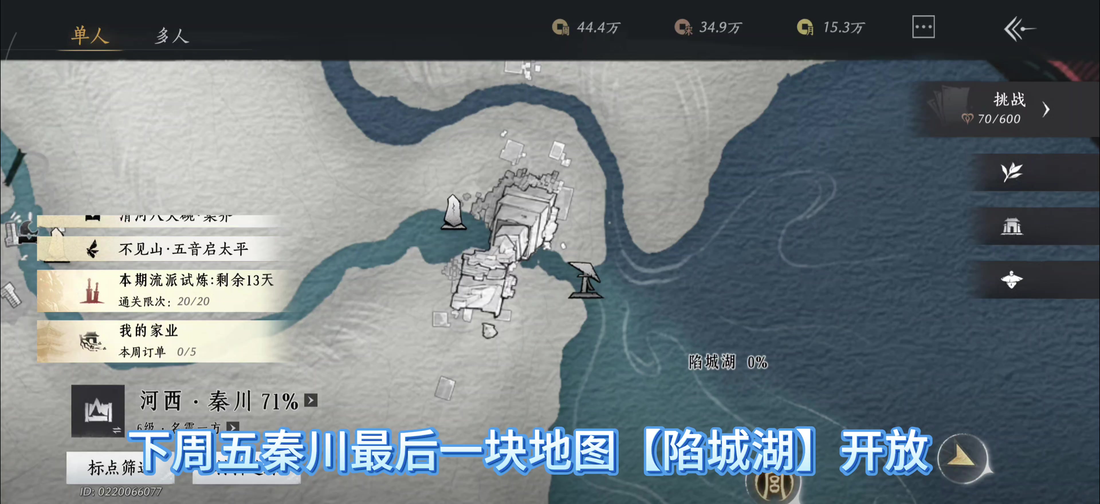 燕云十六声下周五秦川最后一块地图陷城湖开放,