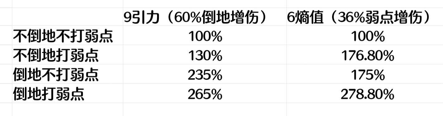 做了一个简单的伤害对比图,如有错误欢迎大佬指正。引力有点陷阱,引力和熵值只能二选一的话建议熵值,还能省3个词条