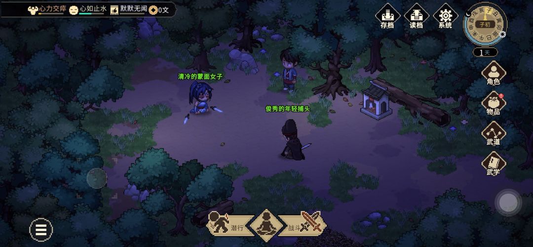 天赋可以天煞孤星,御剑奇才,御剑精通,和交友广阔,全点悟性可以减少升级所需经验,前期过完老板娘入队可以免费住房开局建议双杀,多打点经验,剑法可以到五六级。破庙的紫色拳法不要忘了拿。十天进到村长密室的,如果缺功法可以进茶摊,和那个NPC换公法C。 选择,天赋前两天刷级,没体力了去小乞丐家住,顺便拜师,然后慢慢做师门任务,打到大王寨,主角打不过就献祭让师傅打,说书人一局可以移动两次,所以躲到一边让师傅