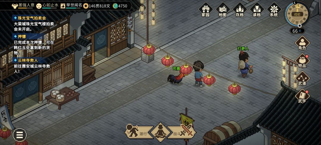 第一个档看攻略拿的(非本人原创我也是看攻略的),具体就是开局普通难,携带化妆品,救捕头选回血。雷击木(用那个拾取键)藏宝图(猎户家边上堆木头打了进去有箱子,记得去铁匠哪里买把铲子),两个灵芝(有个在上方宝箱还可以往里走),大王寨这几个初始启动资金,不加老头门,去大梁城打擂台,做衙门任务刷声望,送礼npc。无名村只带风四娘就够了,如果做了相关任务先拉进来再离队回去。要开启家园要后起之秀的等级声望,加