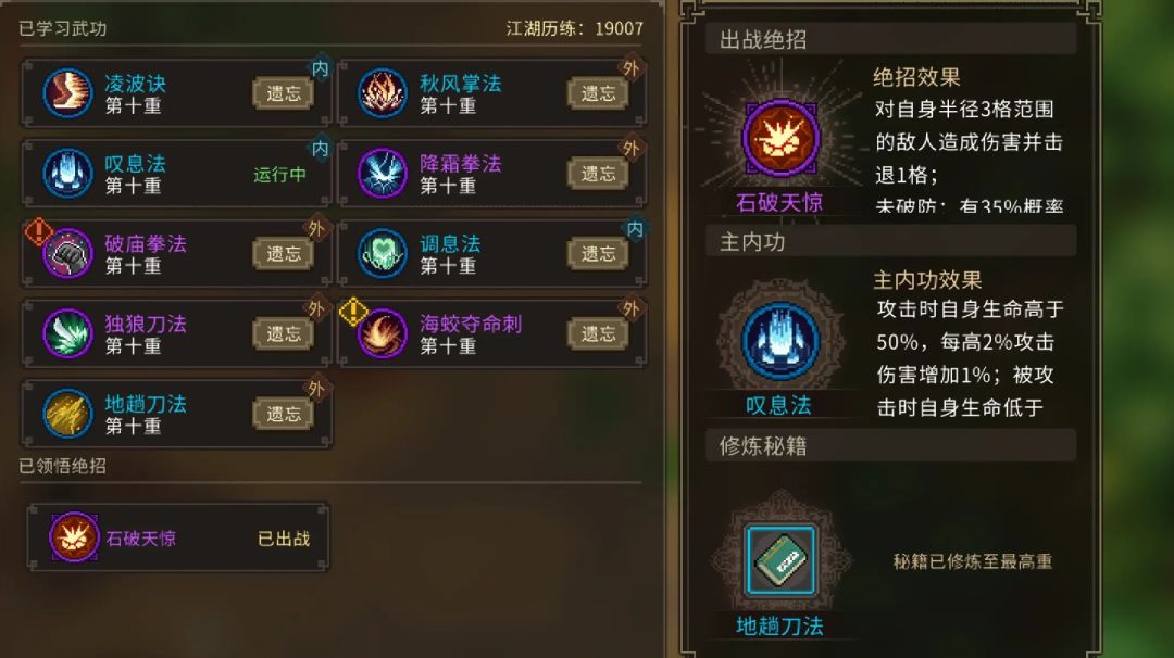 破庙拳法——完成三日之约任务后晚上进入破庙获取(前提拳掌30) 独狼刀法——大王寨箱子(需银钥匙或机关术) (银钥匙前往港口对话富商前往小岛灭掉海蛟寨获取) 海蛟夺命刺——灭门海蛟寨获取 降霜拳法——首次进入无名村拜师剧情老头做完降伏红猪任务获取 #大侠立志传