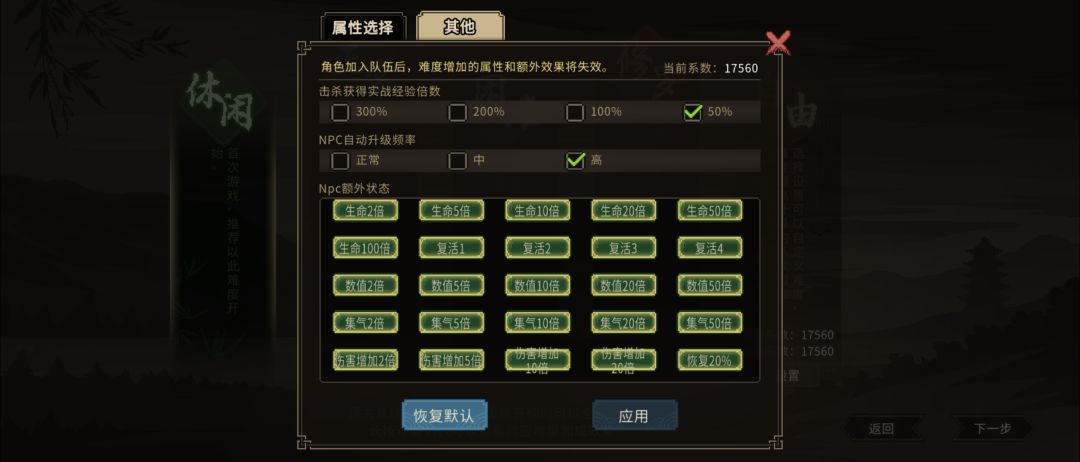 前摇: 闲的没事,开个新档,因为上个帖子说2560天命弱鸡就那样,然后感觉思路有点问题,又有了点启发,这次禁霸主开局 从1级开始,完完整整体验一遍2560弱鸡档 为了加难度,禁止融合功法,禁金色功法,禁止MOD,这样能尽可能防止自己老想着鹤顶红以及暴雨梨花钉的邪典套路,但后期估计还是得用,所以把那个资源加倍MOD也卸了,这样造起来能加点难度,就可以尽可能把毒,把暗器的面开发到最大,当然没了换门MO