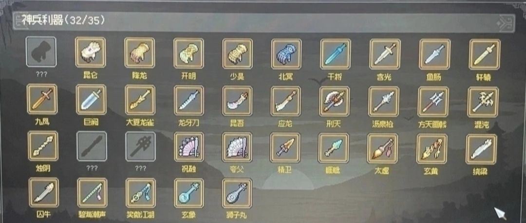 注意 1:有的武器图鉴上虽然展示了但是实际上并不 能获取,仅仅是占位,有的金色武器虽然可以获取但是没有入图鉴,大家斟酌而行。 拳修神兵: 1.昆仑:解决完三个城的九流门事件后,触发夜摩坊拍卖随机刷出获取。 2.少昊:秦桧的装备,灭掉九流门和铁面人或云海崖与柴王会面,斩杀建炎皇帝/齐王获取。 3.九阳:巫咸山跳崖进入秘境后,墓地挖坟拿到图纸打造获取。 4.北冥:云海崖与柴王会面,斩杀建炎皇帝也就是康