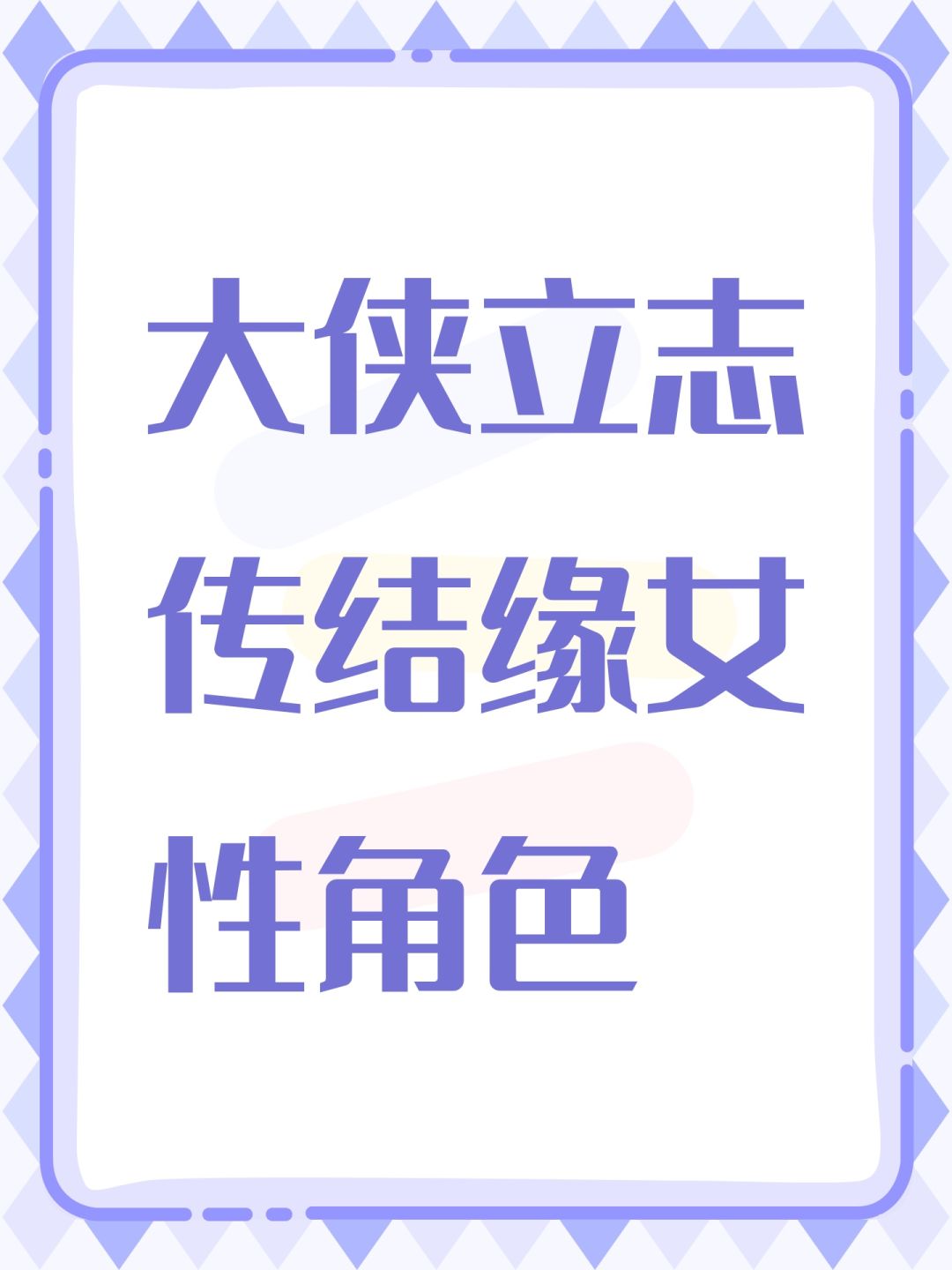 大侠立志传女性角色结缘(二)