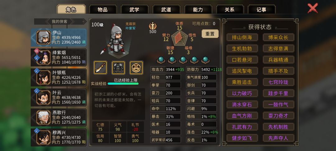 有一些刚开始挑战2560难度的,开局就劝退了。没有武林霸主,扮猪吃虎,其实体质拳法开局就能轻松很多。 一开始有江湖历练,要把等级拉到十级,武道山点出坚如磐石,你会很肉,再由狮子保驾护航。 前面堆体质,拿到破庙拳法就会更轻松,体质越高输出越高,前期让你又肉又有输出。过渡了弱势期,开了家园 后续重置就行了,想玩什么就玩什么。