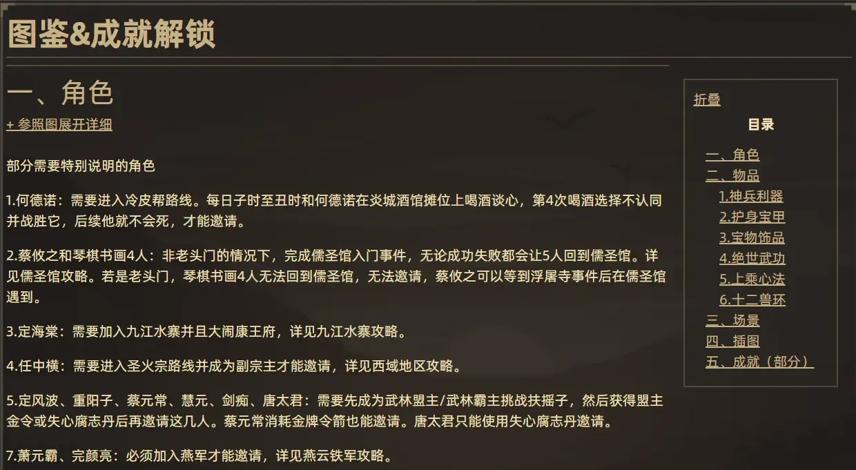 《大侠立志传》图鉴及成就攻略