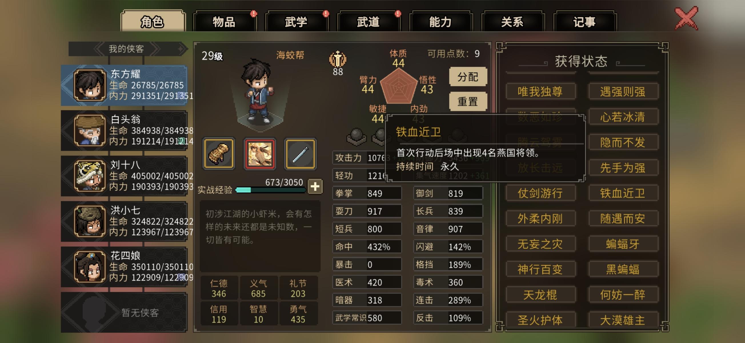 求助,开了mod以后进入游戏,自带燕军护卫,禁军护卫,叶军护卫等特征,用特征删改器没有效果,有没有同样问题的?谢谢。#大侠立志传 #大侠立志传手机版 #大侠立志传bug