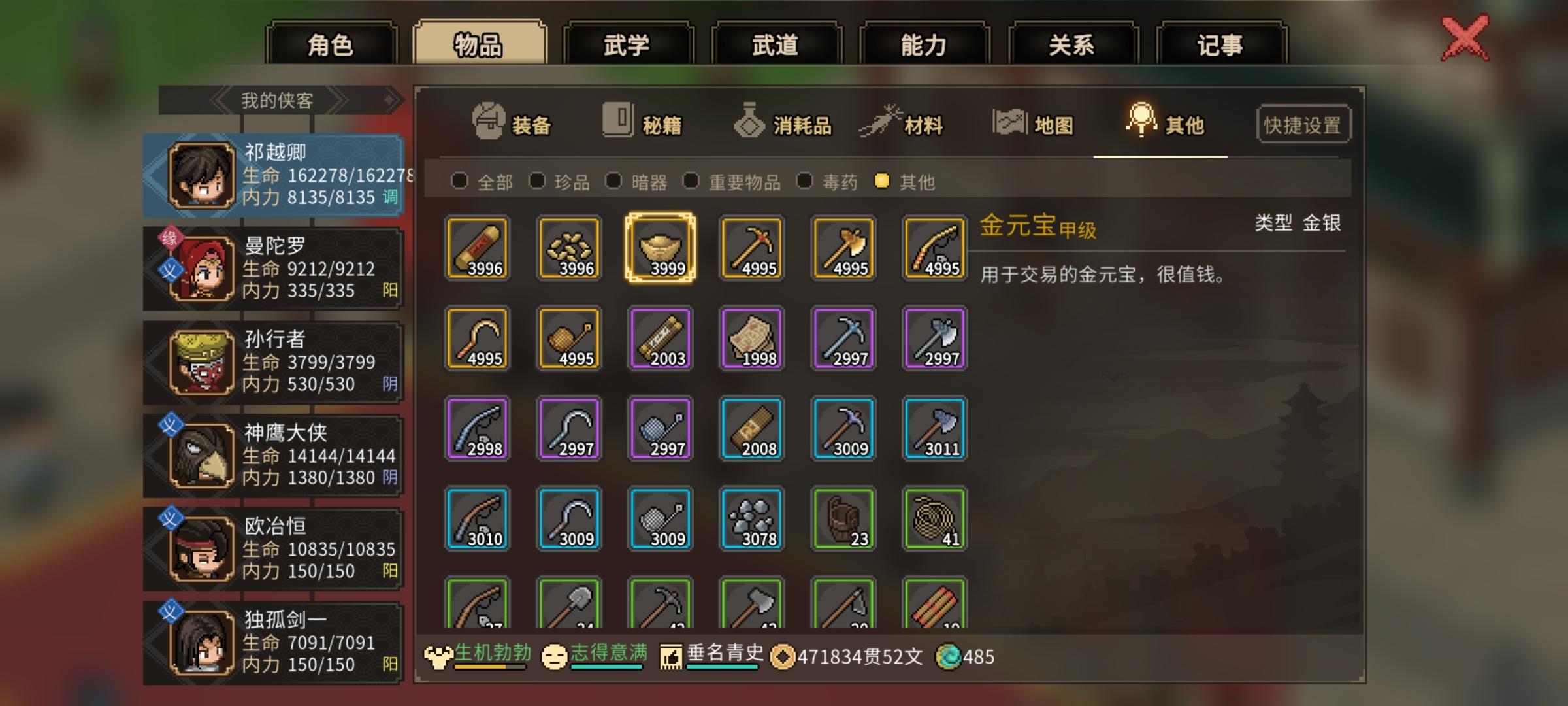 今日终于全成就达成,了无遗憾!游戏很棒,无论是bgm还是内容,都带给我很多启发和感动,优秀的国产游戏应该支持,好像大侠立志传出了外传,届时我还是会玩的。江湖再见#大侠立志传
