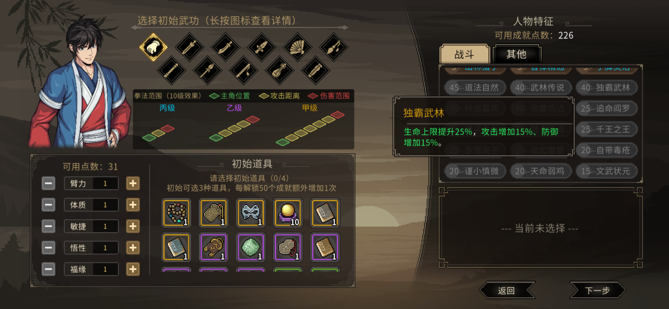 #大侠立志传mod 链接在评论区置顶,部分更新在置顶评论的图片复制到浏览器搜索,删除评论中的文字那些打不开网页的检查是不是多了空格或者多删除了字母帖子只写了部分ID,其它详见文档文档补充了帖子里没有的Buff(不能写太多,不然每次审核很久)特征删改器Mod的问题可以去Mod作者的帖子反馈帖子地址→→特征ID:3404 拳掌奇才 3440 嫉恶如仇3