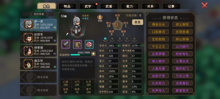 #大侠立志传mod 链接在评论区置顶,部分更新在置顶评论的图片复制到浏览器搜索,删除评论中的文字那些打不开网页的检查是不是多了空格或者多删除了字母帖子只写了部分ID,其它详见文档文档补充了帖子里没有的Buff(不能写太多,不然每次审核很久)特征删改器Mod的问题可以去Mod作者的帖子反馈帖子地址→→特征ID:3404 拳掌奇才 3440 嫉恶如仇3