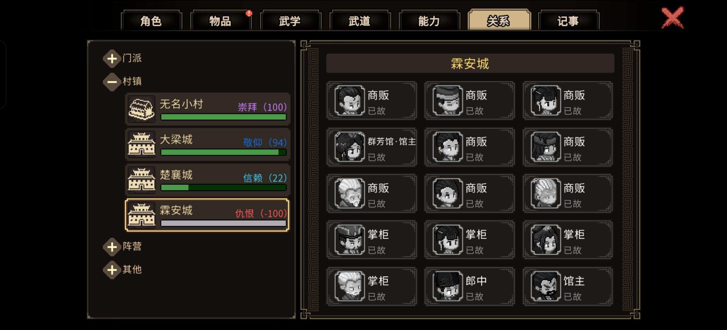 只剩一个当铺的在里面打不到他,,,好像有个聚宝阁赌博更赚钱,后来我改邪归正加入了儒圣馆,六维都拉满了有点后悔屠城了,有什么办法让这个城市的npc复活吗,我去衙门直接被斩头了