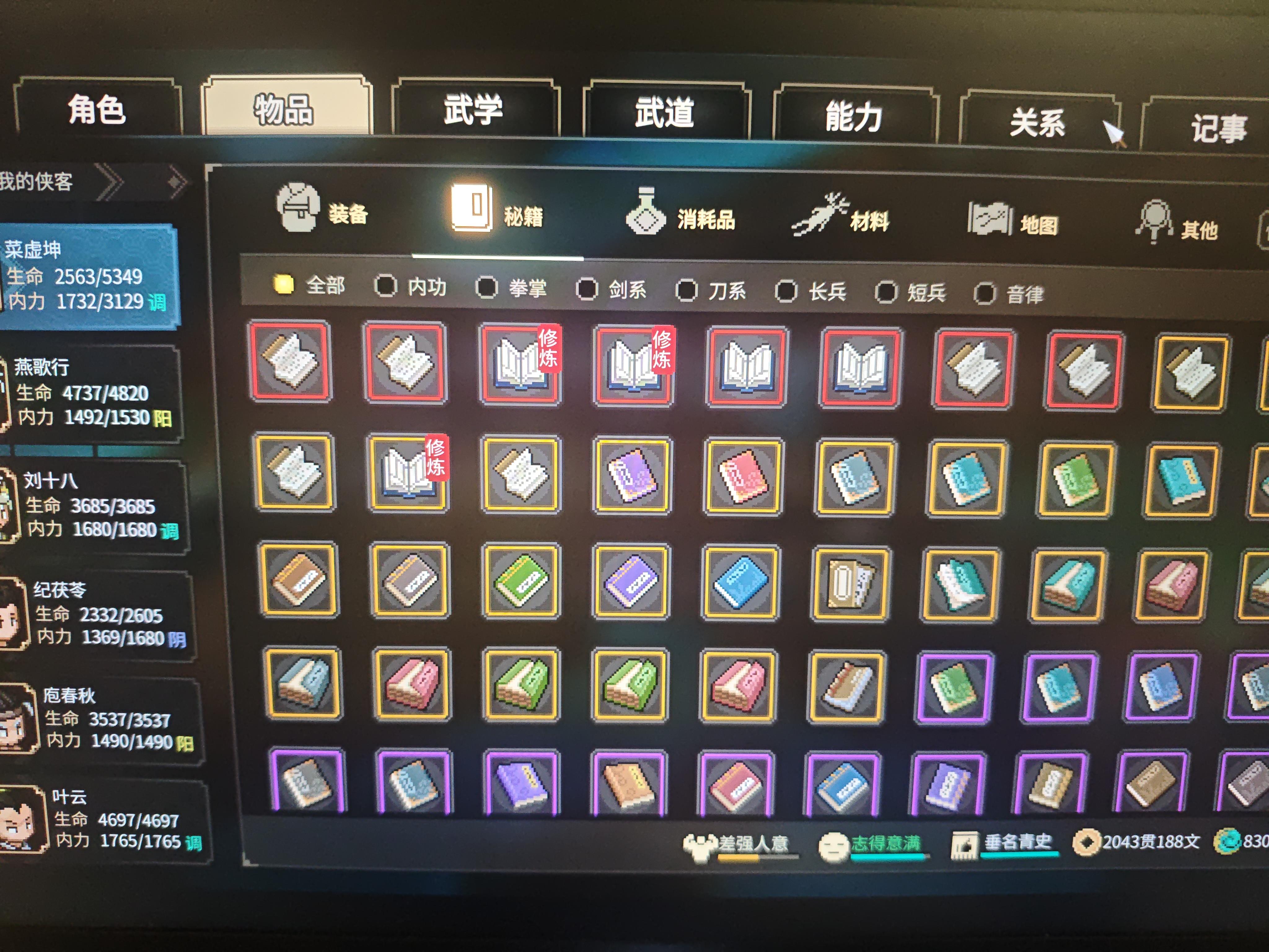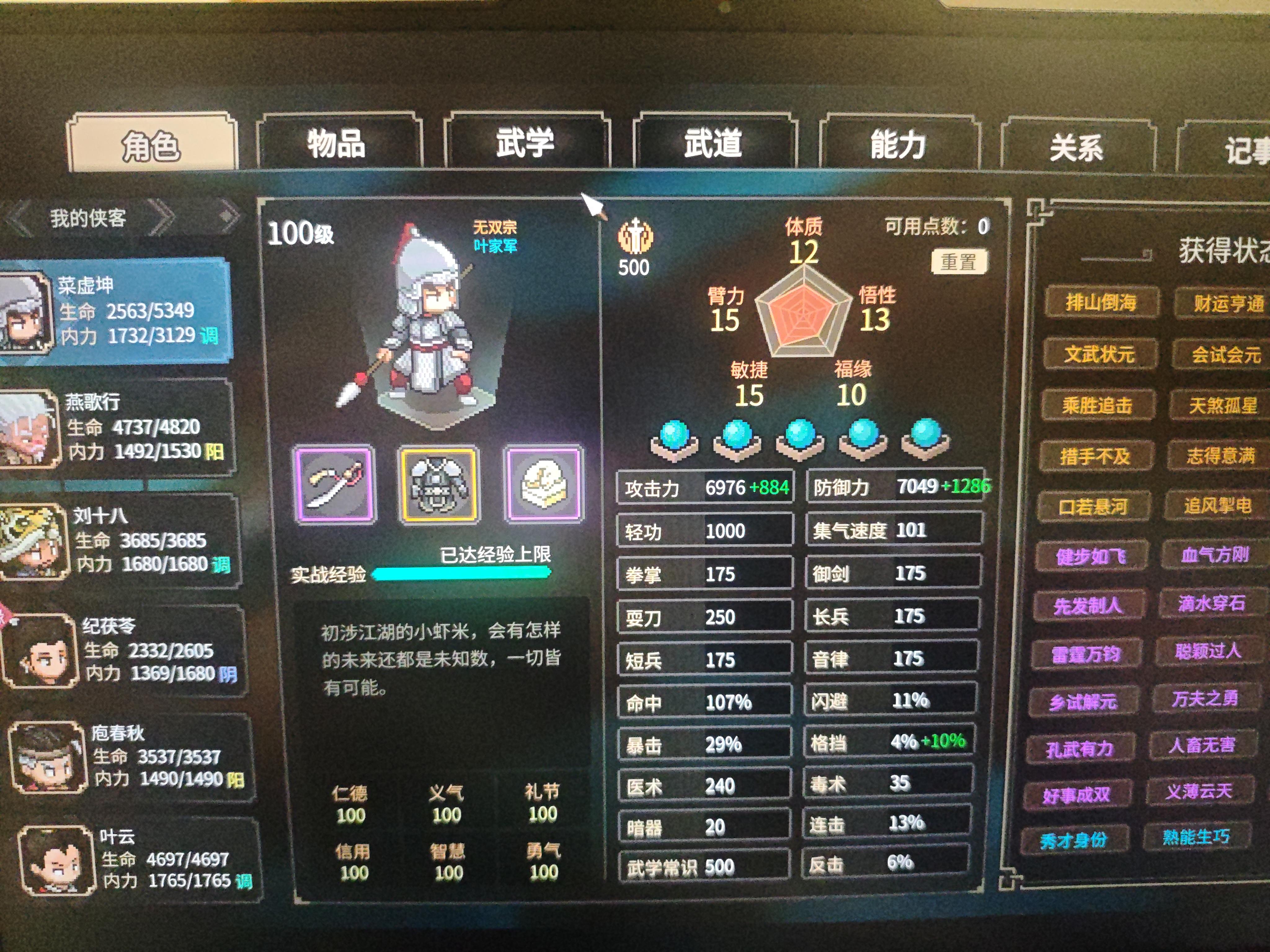 有没有大佬帮我看看我这个面板加武学应该怎么打赢这个牛鼻子老道还有什么地方要提升的吗?一直被秒,要疯啦(PS:还有我这个武学面板一直有小红点,一直消除不了,也没有什么地方要点的,是Bug了吗?)##大侠立志传 #萌新求助