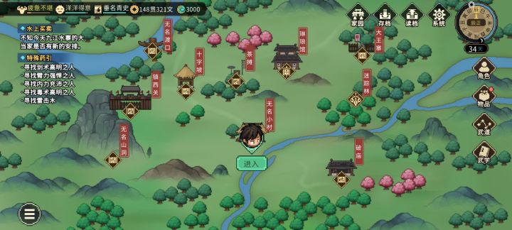 任务没触发就是好感度不够捉迷藏 :小丫小花位置:樵夫家小宝位置:村长家小丫位置:破败民居(采石匠后面,民居里的锅是件紫色饰品装备)小宝的秘密:小宝送给小宝一把木剑:樵夫易物/学习打造,铁匠台打造猜字谜:小花 1.需要一半,留下一半答案:雷2.池上没有水,地上不见土答案:也3.多子为好,少子为妙答案:女包打听的心愿:包打听对话掌柜·花四娘得到手帕,交给包打听郎中心愿: