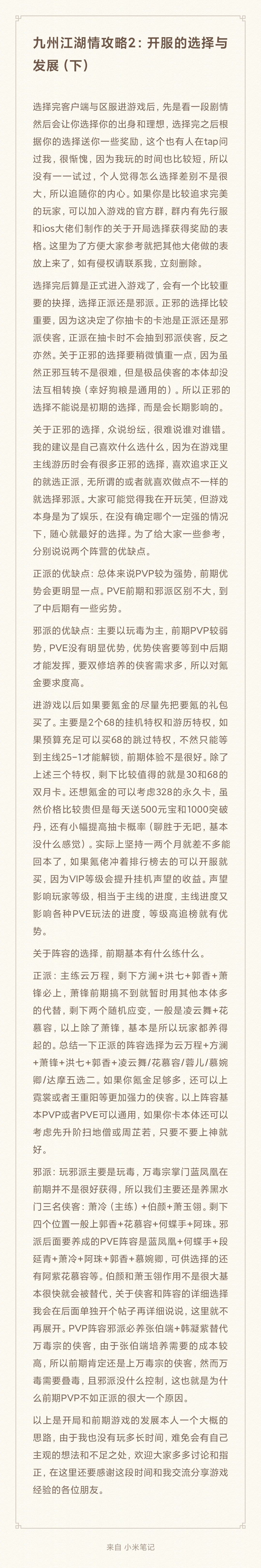九州江湖情攻略2:开服的选择与发展(下)