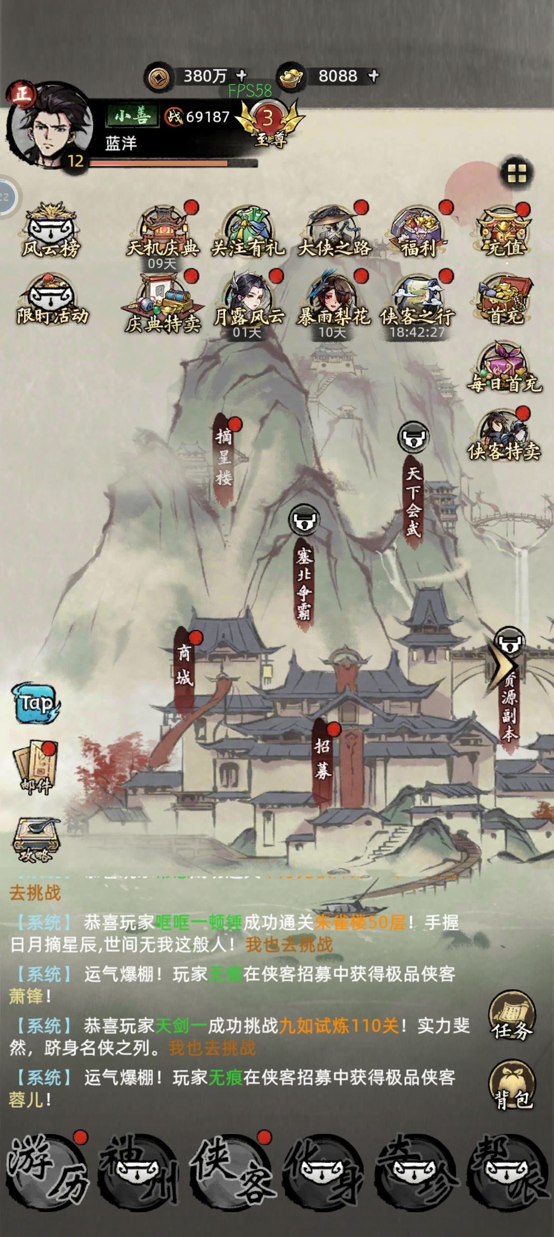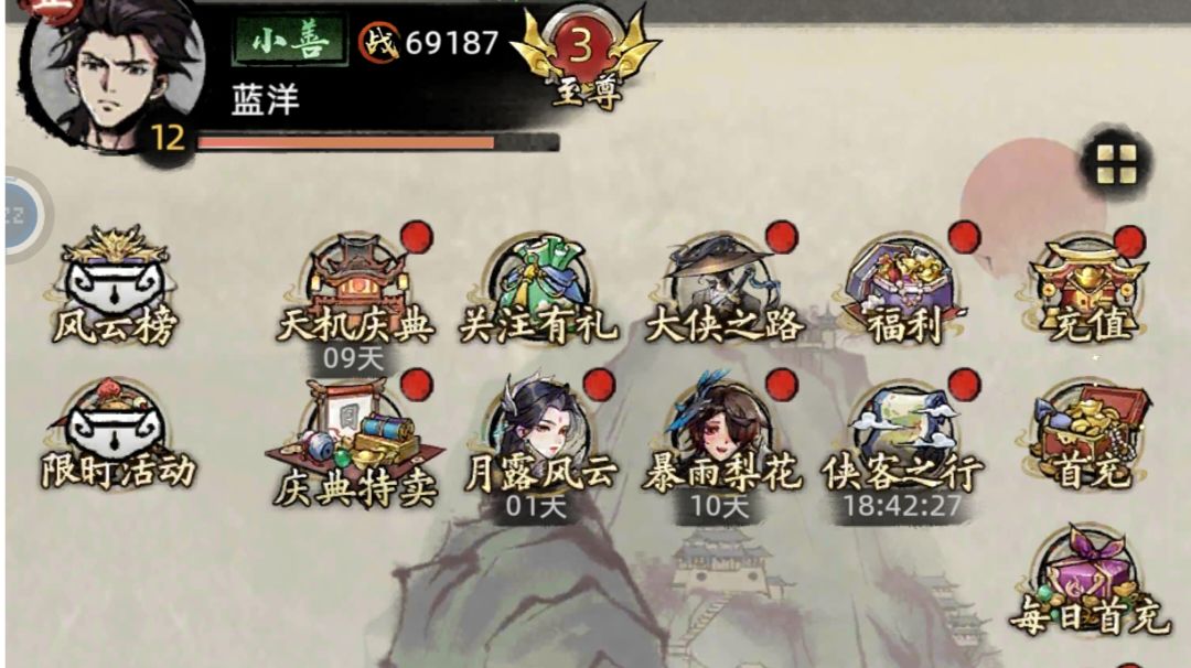 开局选完出身过完剧情之后,建议大家先去卡池抽一波十连,新手十连给的侠客质量还是不错的,保底出一个优质侠客之后继续去推图会更加顺利