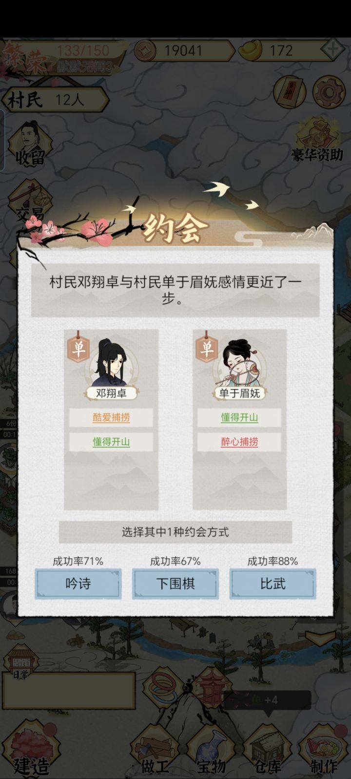 首先,为什么要结婚?郎有情,妾有意,咱总不能棒打鸳鸯不是?看看这眼神,拉丝了!!!开玩笑,主要还是双方能各得一个技能看看这个懂得养家(种田+10%),这个养生新手(收获时间-2%)!真的很难不心动!!!所以我选择两个种田天赋的单身汉来迎娶我少得可怜的漂亮妹妹(丑也没关系,我是数据党,反正不是我对象)那么,该如何结婚呢?把两个单身异性放在同一个房子里这里要记住,一定要是青壮年单身汉,