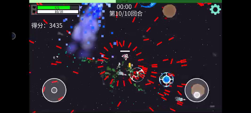 比较菜玩到第七回合15级的时候给围殴死了btw最后敌机太多整个包住了之后就动不了了,不停地掉血无敌然后掉血整得有点卡,希望能改进一下