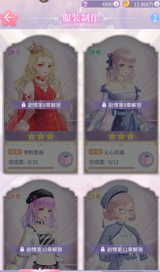 章节解锁的免费服装也特别好看,我甚至觉得拿去出活动套装也不为过的那种,给得一点也不小气。