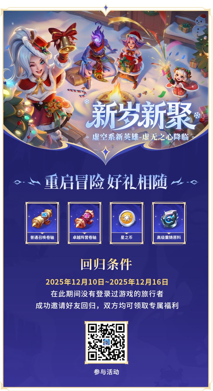 亲爱的各位旅行者,【新岁新聚】好友回归邀请活动已上线,快邀请老友重返超能世界,双方都可获得专属奖励!期待与各位新、老伙伴的相聚,一起重塑美好回忆吧!