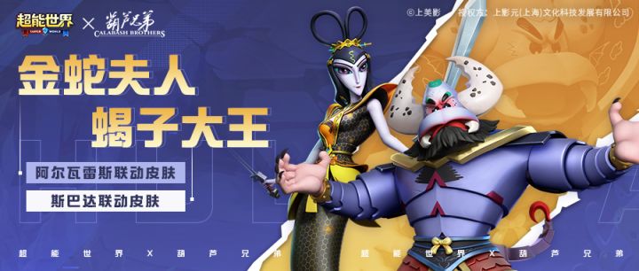 各位旅行者,《超能世界》X《葫芦兄弟》联动版本将于2月9日正式上线!本次联动,我们特别根据《葫芦兄弟》原著经典角色——蛇精、蝎子精,设计两款联动皮肤,分别为阿尔瓦雷斯、斯巴达两位人气超能英雄打造别样穿搭。一起揭开联动皮肤的庐山真面目吧~上线时间先锋服:2024年2月7日超能服:2024年2月9日📌皮肤介绍⚔阿尔瓦雷斯联动皮肤【金蛇夫人】金蛇夫人为万年金蛇所化而成,诡计多端,无恶不作,手