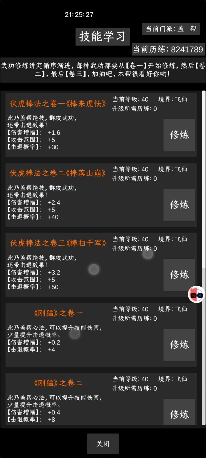 本来想着一块发的,哦豁太多了,游戏内还不能长截图,只能分开发了!这次发的是新手门派丐帮,技能话费钱,升级必学的!这里分别放上了,初级技能和满级技能的区别,初级技能是给新手算所需技能飞仙所需飞仙酒的数量的,就是初始技能所需经验出除以1000,比如第一个攻击技能,初级需要1000那就是一个酒!就这么算。后期会发别的门派,这样新手可以选择花费少的酒的技能学习,这样可以快速升级!