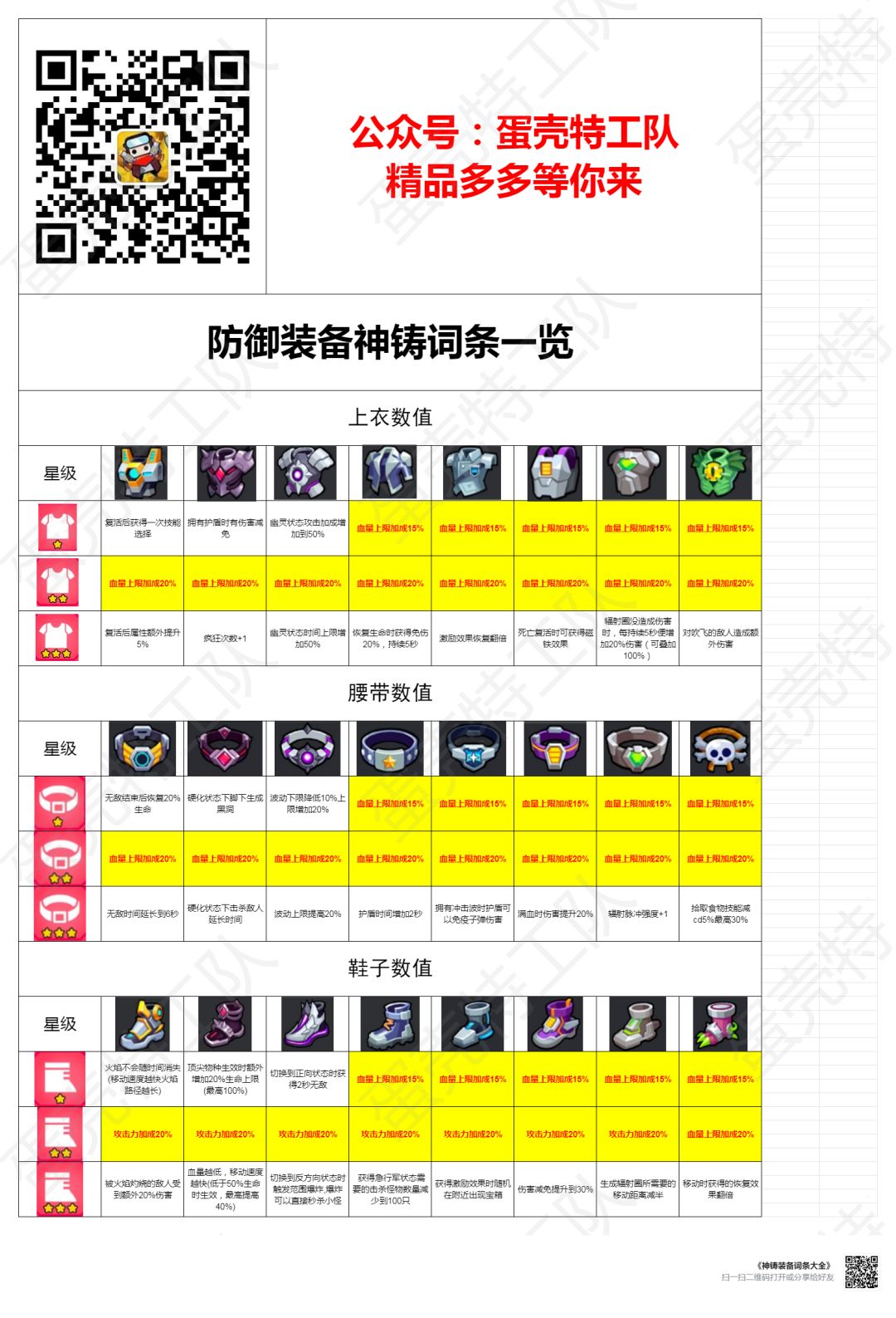 各位玩家大佬们好呀,关注小编不迷路,各种福利带你暴富!今天又是轻松愉快的一天,准备好开启紧张刺激的游戏了吗?且让小编给大家带来大神知识大全,一起来看看吧。 神铸装备各位小伙伴们都知道,那么所有的装备神铸后它的属性词条到底是什么样的呢?那么就由小编来告诉大家吧。 这期小编将防御装备的神铸属性和词条整理了出来,咱们的表格数据是可以长期有效使用的,所以各位小伙伴们不必担心,可以将图片保存下来利于后期的使