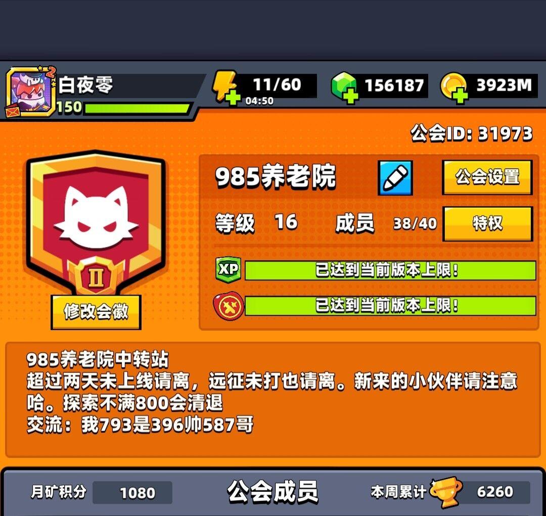 缺2,招65w+探索积极的,另外工会有一个140w战力的账号需要长期接手