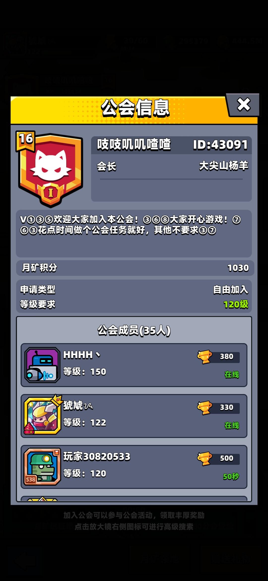 16级轻松休闲公会招人,目前难11打满。 要求不高,只需月矿打满即可!!欢迎各位远征一550+(或战力65w+)的兄弟进来一起轻松拿奖励。 低战力也没事,只要你积极参加探索,我们也同样欢迎你!