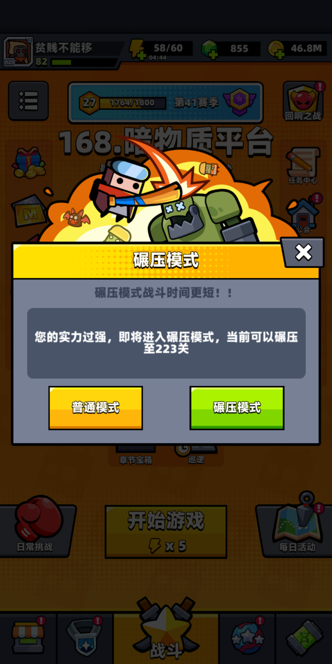 每隔1.5分一个debuff,只玩碾压局,5分钟也就3个,依旧挂机通关