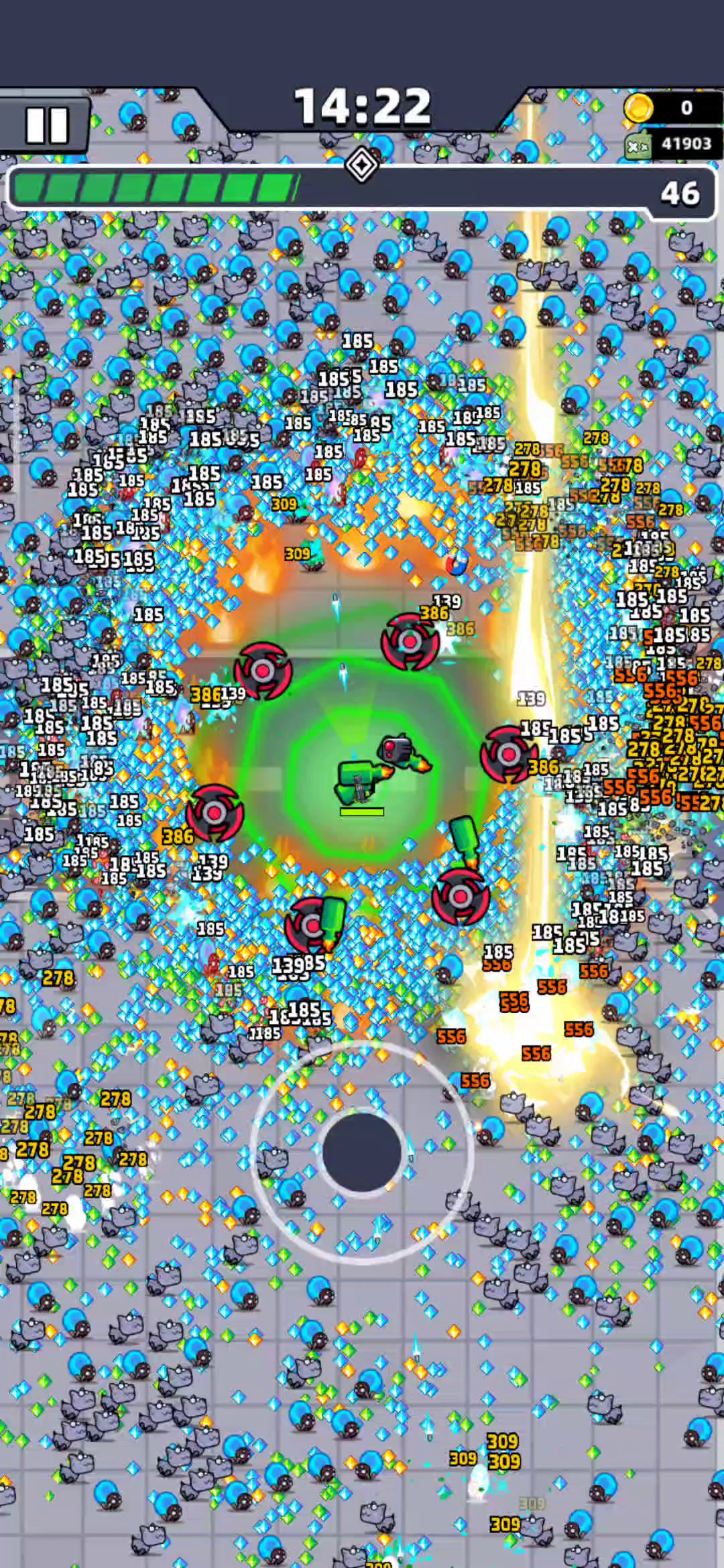 榴莲开局,机枪扫射,追着榴莲跑,这局选的时候没选好,机器人没进化,也没摸到钻头,正常的话不要机器人,进化钻头飞剑追着boss砍,被动选的就有点乱了,要是9关估计就输了,但是是第六关难度2还是没问题的就这个思路,野猪群能保命,打boss有伤害