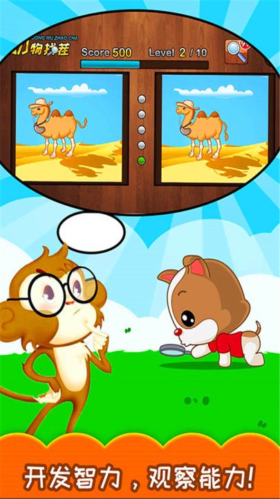 你只需要有敏锐的观察能力,就能轻松找出不同之处,游戏的主题依旧是孩子们喜欢的动物,并且配备了独特的音效,让游戏变得更加有趣有趣。有兴趣的,快来下载儿童动物找茬试用吧!
