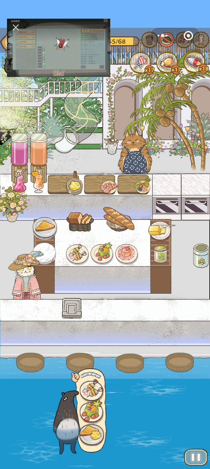首先是游戏玩法:自己烹饪菜肴,然后上菜给顾客,第一个世界的五个店铺在钻石充足的情况下,相当简单,而且重复率比较高,但是打发时间绰绰有余,而且相较于各种点击式餐厅游戏,这个肯定是更加有难度的(就我个人而言),当然在第二个世界可以明显感受到难度增加了,也更加游戏了。