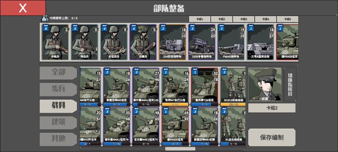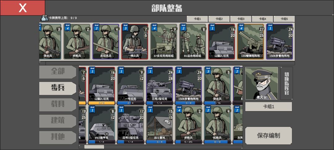 思路是廉价步兵组合填线扛伤的同时毁伤对面的载具,你杀的没我填的快我的阵线就能缓慢推进。 两个建筑是主力远程输出,带大量步兵扛线的目的也是为了炮兵阵地不被攻击,随着阵线的推进炮兵营地也得跟着推进一直到能轰到对面家门口 指挥官带的是具有精准打击功能的100m榴弹炮轰炸无法修复的任务目标来开路 个人认为装甲载具真挺没用的油耗量过大,输出不如炮兵营地,修他的维修兵又容易死。带个低费装甲车清清杂兵消耗一下多