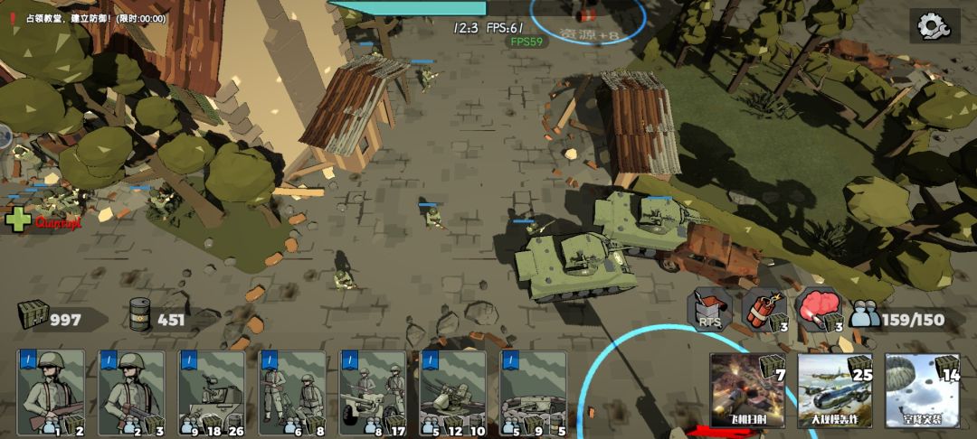 从第一章随便点到第二章必须看攻略,难度一下提升太大。第二章新手不看攻略,看广告都过不了。建议在第一章跟第二章之间加一章。 新手记得先出步兵,再出坦克。让步兵去吸收火力,坦克输出。步兵接敌时,放轰炸加伞-兵。