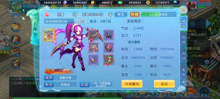 游戏一个字爽,但是我说的是数字爽。刚开始打的伤害数字是六位数感觉自己的伤害挺高了,然后就充了钱。后来发现自己的伤害能达到一个亿。再后来看到怪的详细介绍。他的血量是一个正。后面我又查了一下正是什么意思,这是多少个亿呀?一个字,游戏数字比较爽。就算你有一个亿的伤害,在这里面也只是小数点。就给我感觉吧,你在别的游戏游戏里面一转两转就特别高了,飞升或者什么的都特别高了,但是在这里面呢这就是一个等级,一级,两级,他可以50转。50转相当于咱们升到50级,它可以升到500转。