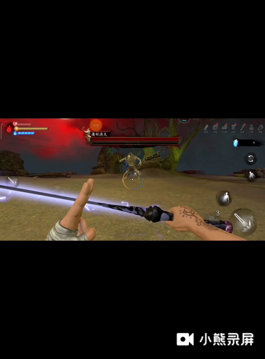 血月的渔夫比满月的肉了不少 所以用符打远程不好过 进去直接近身 或者等他跳过来(注意躲鱼叉)然后和白无常一样转圈打(推荐用雷剑)因为渔夫的攻击频率没有白无常那么规律 所以大多时候只打两下好 绕圈的时候可以先按攻击再滑动屏幕(因为攻击有前摇)