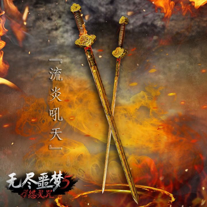 「流炎吼天」人道试炼所得,为历代先人祖辈呕心沥血所铸之剑器。剑锋不知其材,其中隐有流炎窜动,似是不安于剑中,欲喷薄而出,故名「吼天」。获取途径:完成化境中的人道试炼,在历练中领取。