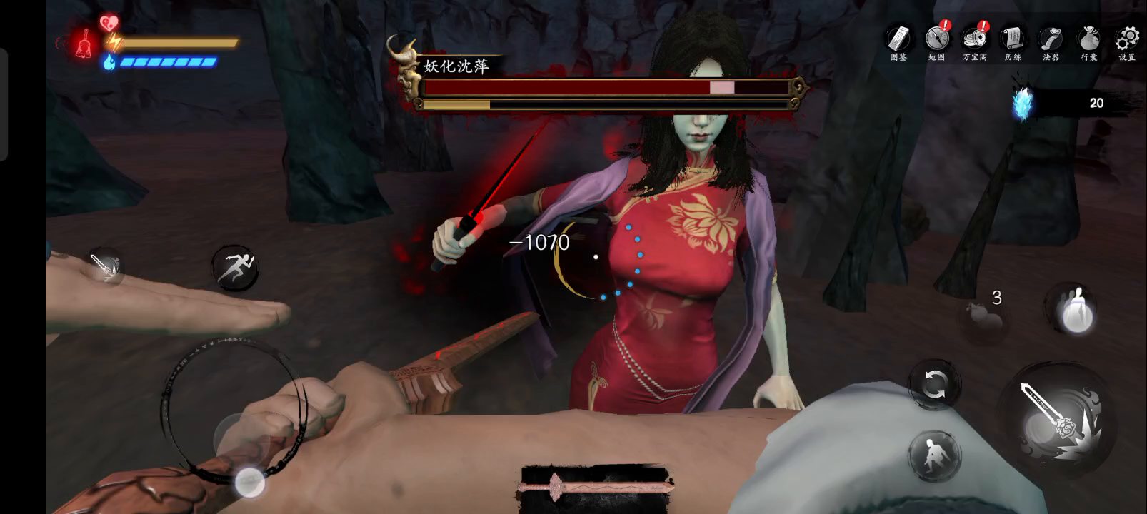 两击(黑球剑击两下) 二闪(左右闪避) 三打趁沈萍怨灵不攻击时抽她三个大比兜