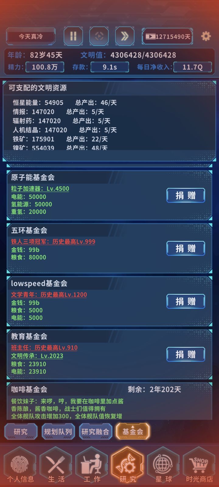 我相信时间一天一天走的话大佬们应该都会操作,我也是机缘巧合之际的发现,能更早的开启黑奴赚钱,理论上来说的话倍率够高,可以少点一个加效率的研究项目,从数学开始,一个项目要研究5天,每个项目最多一天,我是开了三个0.3效率的才够把黑奴必要科技一天满级。最后等研究倍率上去了就把那三个科技点满,同时工作也好了,包括投资10%的加成都可以点上。等不太需要黑奴赚钱了就可以把其他工作科技跟着研究点上。望大佬们多