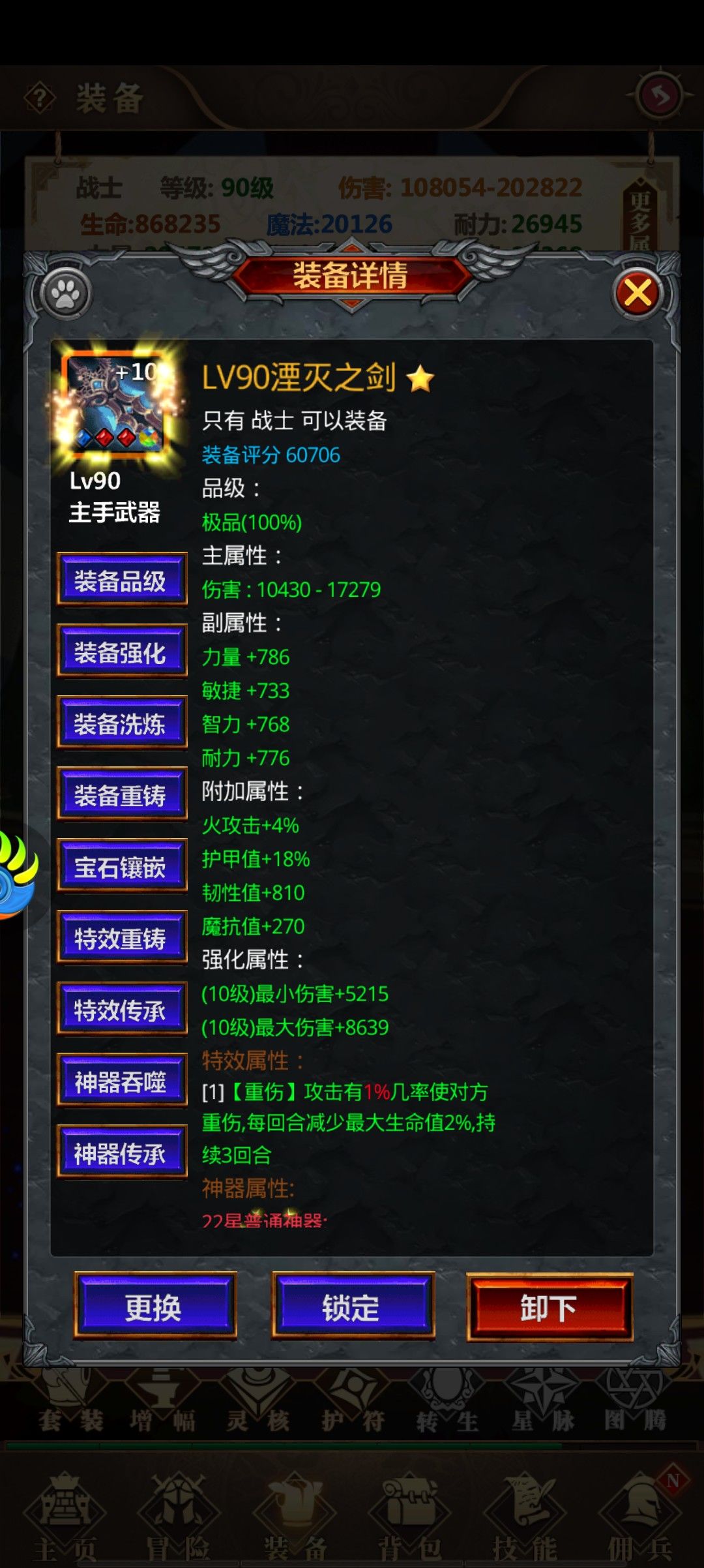 #放置魔界 这个游戏还可以只干不氪,前期都是新手装,可以全部上然后装备它是有那个套装加战力的,前期度过很快,而且一套下来加经验值将近60~70,而且伤害提的也很高。后面就是等级提高了,就是装备强化以及宝石宝石在背包里面,然后有个宝石,然后才能升级,让他的战力提的更快,然后就还有一个神器专属那个提战力很快。
