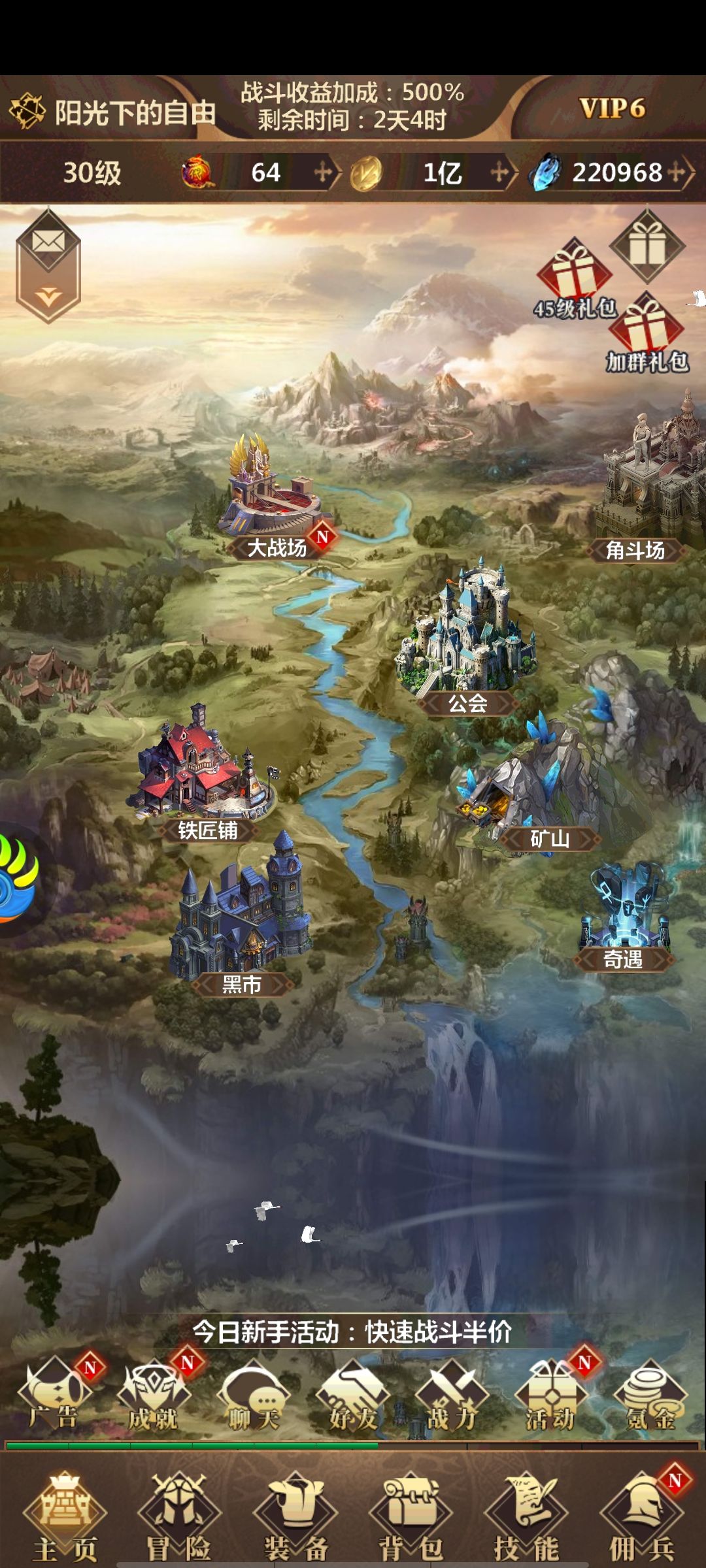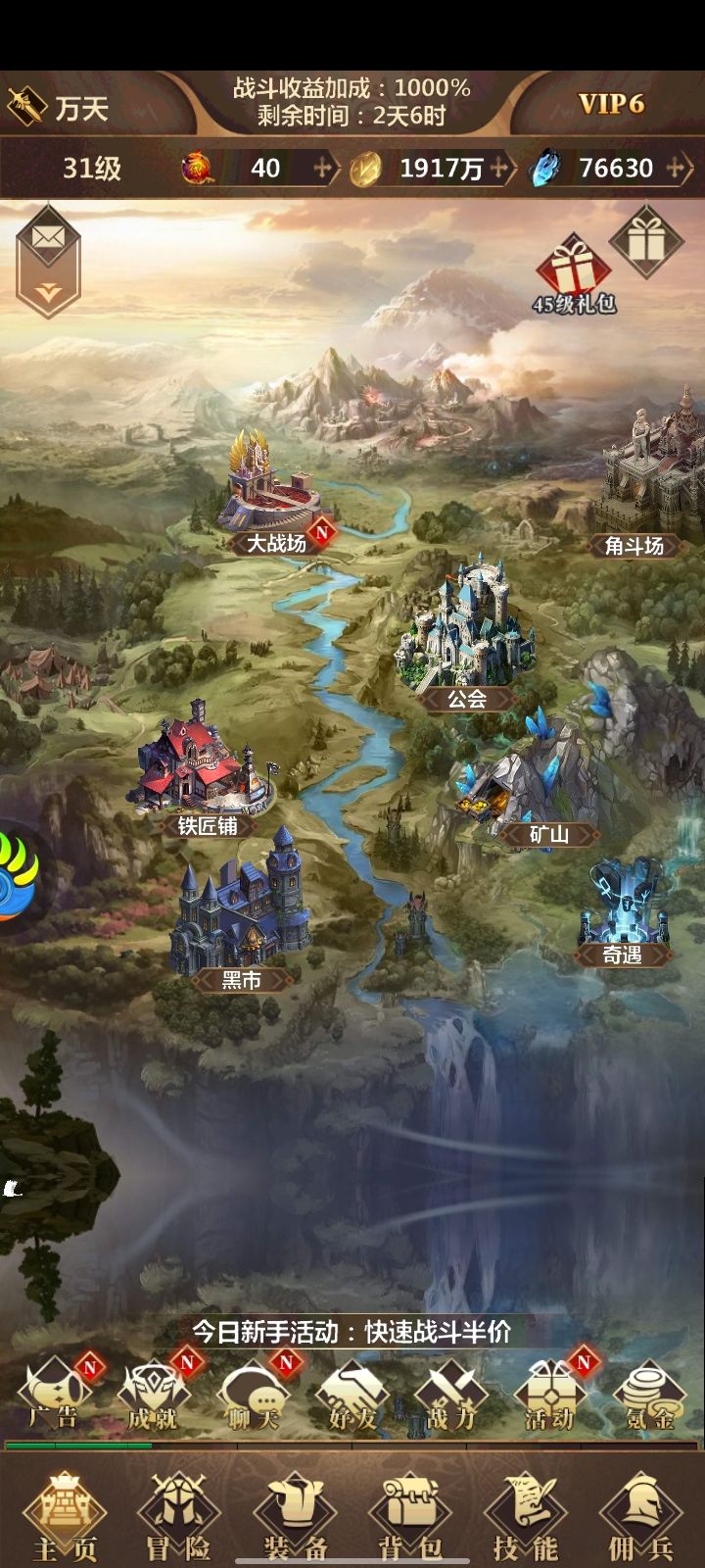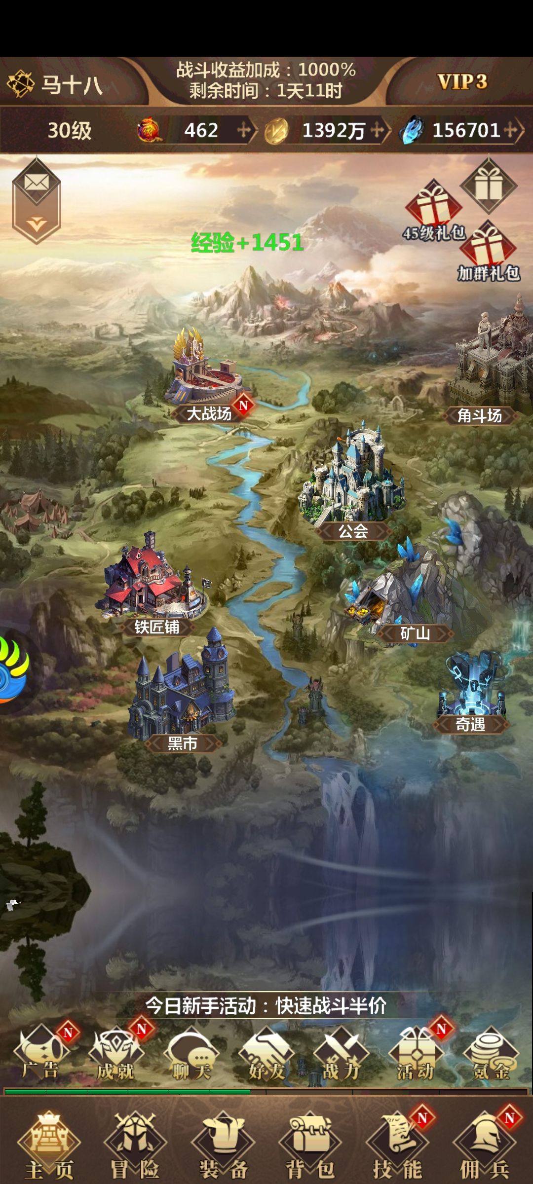 新手先把论坛 q w 的礼包能领的都领了 再找客服领充值卷 有了新手套装就推图 推到打不过了 就去刷boss 把装备整理一下 然后战力突破了继续推图 升级是王道 把每天能参加的活动都参加了都是涨战力的 前期有资源就把雇佣兵培养一下最好主要培养战士 有增益 还能抗