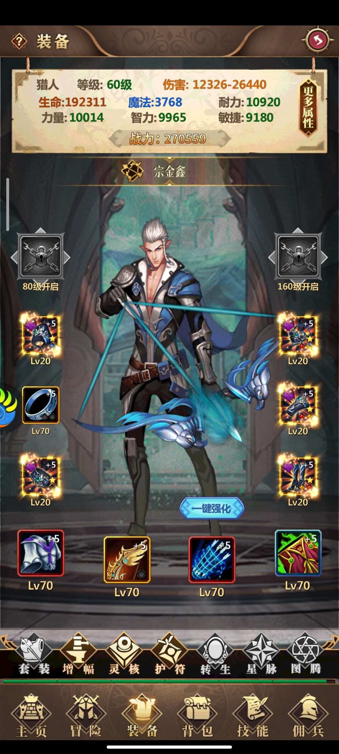 #放置魔界 这个游戏还可以只干不氪,前期都是新手装,可以全部上然后装备它是有那个套装加战力的,前期度过很快,而且一套下来加经验值将近60~70,而且伤害提的也很高。后面就是等级提高了,就是装备强化以及宝石宝石在背包里面,然后有个宝石,然后才能升级,让他的战力提的更快,然后就还有一个神器专属那个提战力很快。