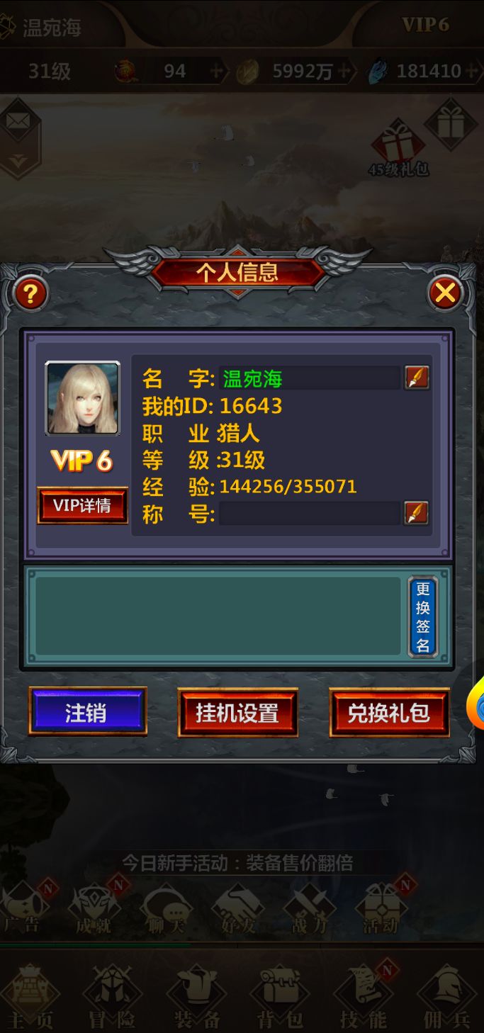 良心放置手游,对平民玩家很友好,只要肯熬时间就行。开局建议选战士,pvp很强。 赞代金券换648充值非常重要,还有活动里每日限购的全部商品一键抢购就行,很划算的。 领完兑换码之后,背包所有宝箱一定要升到最高级在开。 然后就是推图,首先用神器碎片开鞋子,加经验的,这个很重要,然后把神器属性升到20左右。 其次是武器,打造一个声望武器就行了,也升到20级左右,伤害加成很高。 然后战士力量宝石升到10级