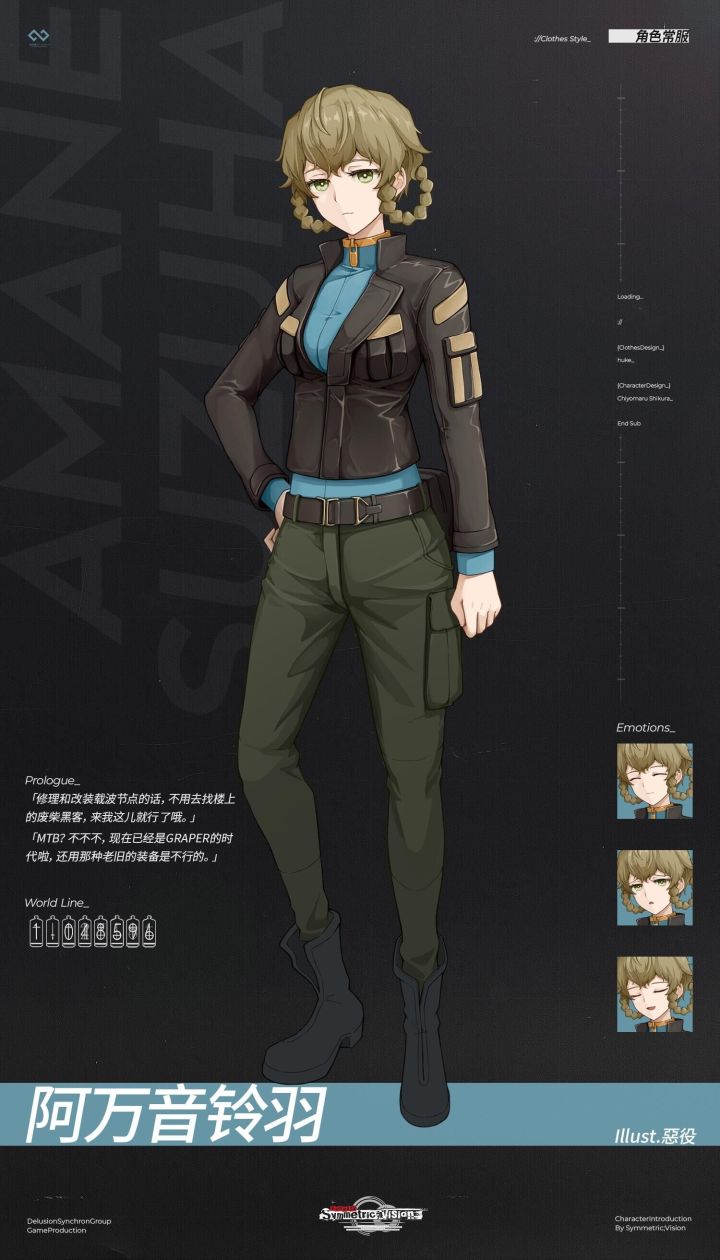 #镜解视界# 角色介绍 Part.08://[阿万音铃羽/桥田铃个人档案.txt ] 正在解码中...——「修理和改装载波节点的话,不用去找楼上的废柴黑客,来我这儿就行了哦。」「MTB? 不不不,现在已经是GRAPER的时代啦,还用那种老旧的装备是不行的。」——Illust.惡役Cover.Steins;Gate