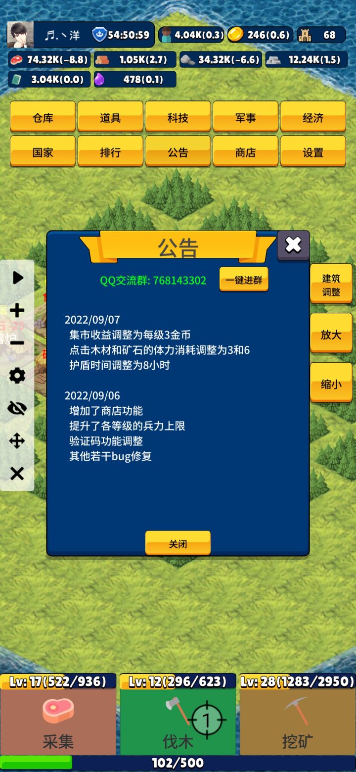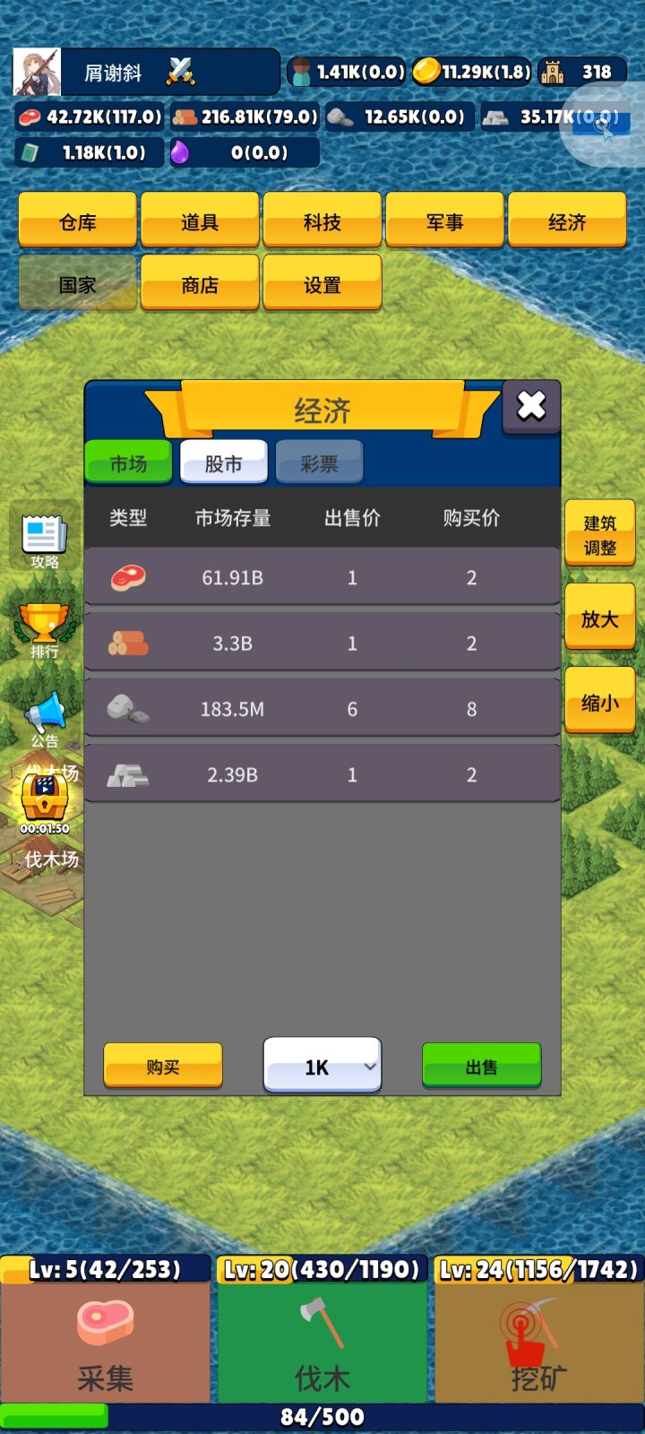进游戏啥都别想,直接点下面的木材,然后建7个农场,1个房屋提供人口(有10个左右就行),人口获取后摧毁房屋,建造农场。建筑升级后每级提供1繁荣(1级建筑不提供),升到30繁荣后,就可以建造集市了如图中右上角的位置,有个城堡一样的代表的是繁荣。农场生产的粮食可以在市场里面卖出来获得金币。获得的金币购买金属来建造集市,等一级集市建造好了之后,就会生产3金币/5s。市场在下图的右上角经济里面。点