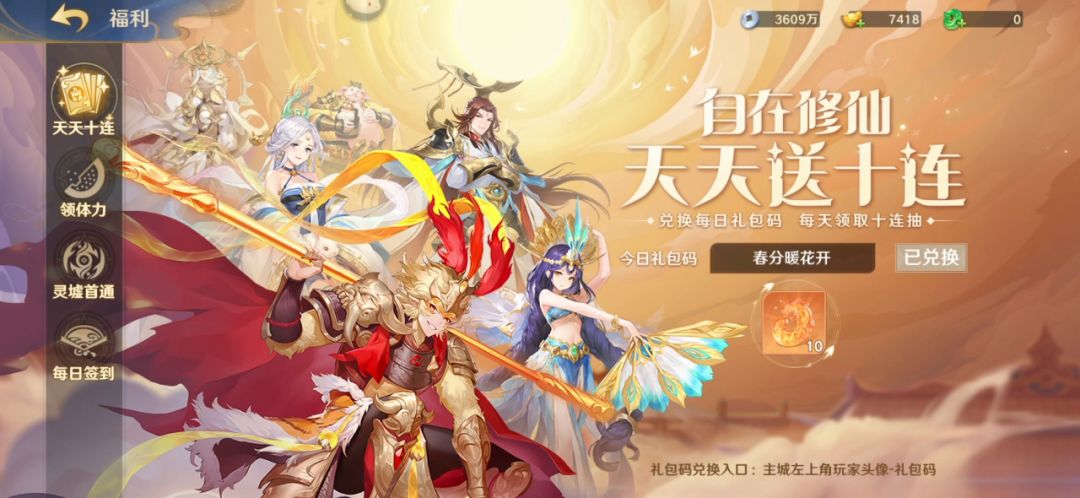 进入游戏,开始的猴子牛魔王战斗退出游戏重进。前三次抽卡也退出重进。可跳过。 5级主线打嫦娥后,点击阵容,主角,突破,使用地仙丹。因为差4个,第一次会扫荡4次结束到7级,继续扫荡10次到十级,继续扫荡到12级。跳过9级11级教学。再扫荡几次不用买体力。 精力买8次,抽20次卡,领经验就16级了。自动聚灵到20级,开5倍速全部聚灵。然后5倍速战斗到3图,前俩图只上一个橙和主角在一二号位。他俩出手可以直