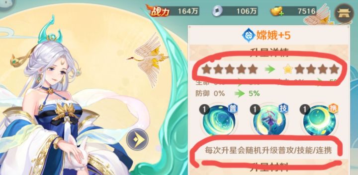 一个角色最多可以升五颗星,每升一次星就会随机升级一个技能,要记住技能的升级是随机性的,但是这个游戏的角色一共有三个技能,每个技能五个等级,也就是说就算你把人物升满星之后你的技能也点不满,那么这种情况下会出现一个什么样的现象呢?那就是欧皇升星之后技能点可能全加在2技能或者3技能上,而非酋的技能点很可能全加在普攻上,要知道如果技能点加到2、3技能上肯定要比加在普攻技能上要强很多的,这会导致即使是同一个