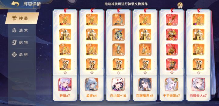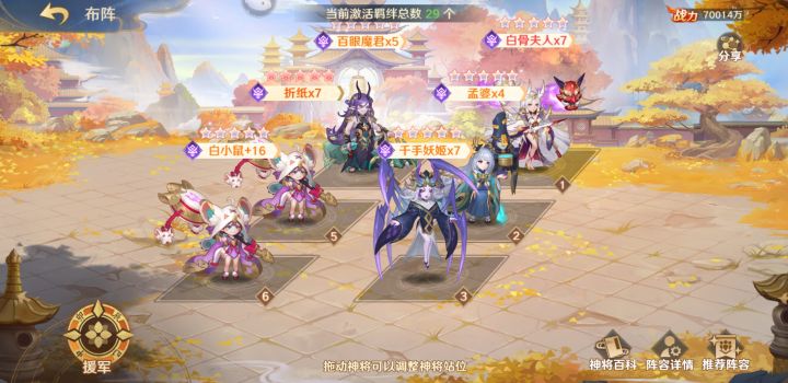 游戏的各种玩法和功能是随着等级,还有开服时间的增加而逐渐开放的,因此,咱们从前往后讲吧,不过有些顺序可能会乱,应该无伤大碍。玩这个首先你要考虑你自己要充多少钱,重氪无所谓,随便看看。轻氪和零氪,就看看思路吧,毕竟我也是个轻氪。(一)四个阵营,第二天会送个孟婆汤给你转阵营,所以说一开始阵营无所谓,而且后面还能买孟婆汤,不过阵营好像会影响第一次出橙将,界面右上角有推荐阵容,可以了解了解(二)门派