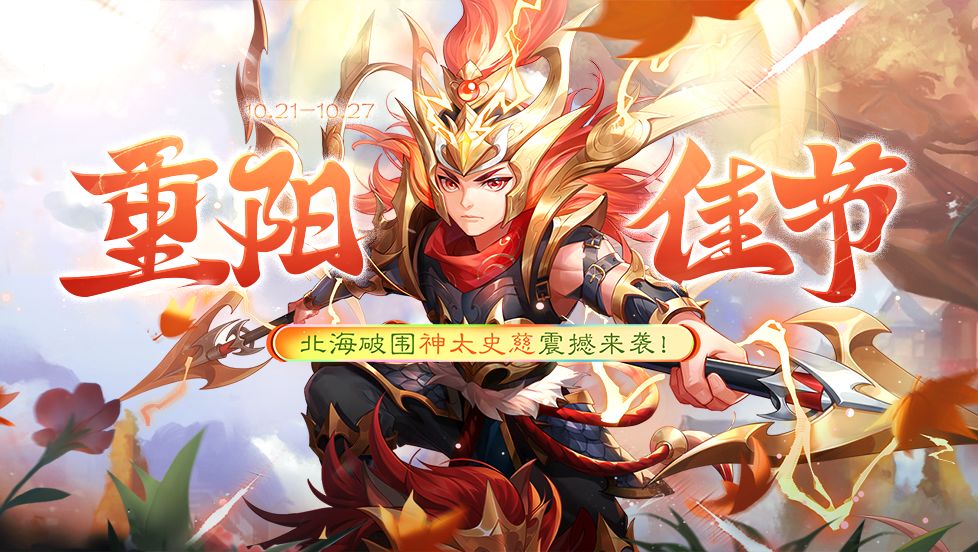 【重阳佳节】 活动时间:10月21日—10月27日 【小猫钓鱼】 活动时间: 10月21日—10月27日 【小猫钓鱼】 概率公示 当期武将(神太史慈)0.3%,神将0.1%,SSS武将1%,挂机券30%,紫色将印5%,橙色将印1.6%,手气卡12%,换将卡12%,将魂8%,紫色将印碎片6%,橙色将印碎片4%,武将碎片4%,欢乐豆4%,将印经验令12%。 【本期奖池】 武将奖励:神太史慈、神孙策、张